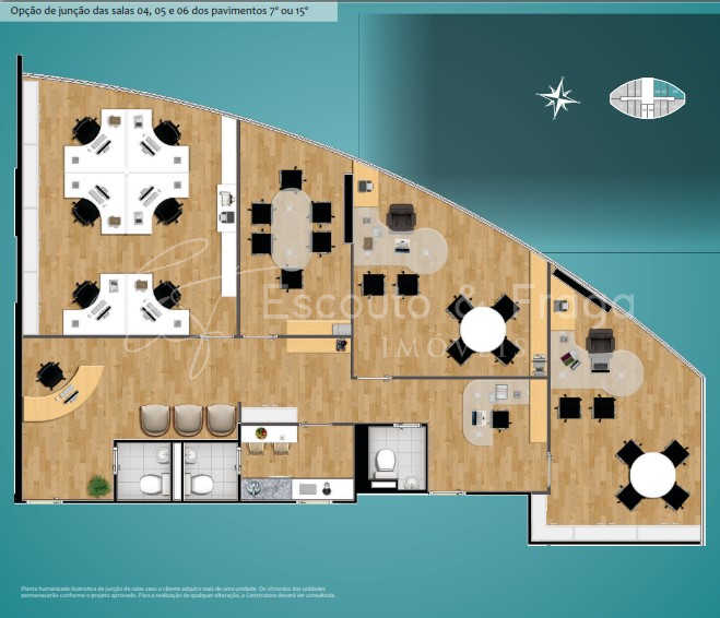 Arquitetura arrojada, inspirada em empreendimentos de Dubai. Todas as salas com vista panorâmica. Lojas ao nível da rua, com grandes vitrines e pé direito duplo.